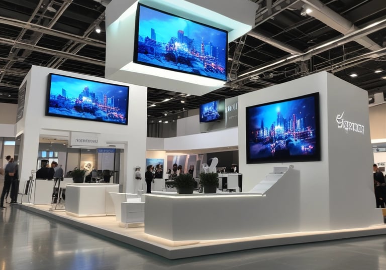 تصميم أكشاك ومعارض تفاعلية تمزج بين الجمال والوظيفة، مع مراعاة الهوية البصرية واستخدام تقنيات حديثة لجذب الزوار وتحفيز التفاعل.