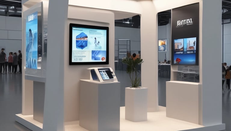 تصميم أكشاك ومعارض تفاعلية تمزج بين الجمال والوظيفة، مع مراعاة الهوية البصرية واستخدام تقنيات حديثة لجذب الزوار وتحفيز التفاعل.